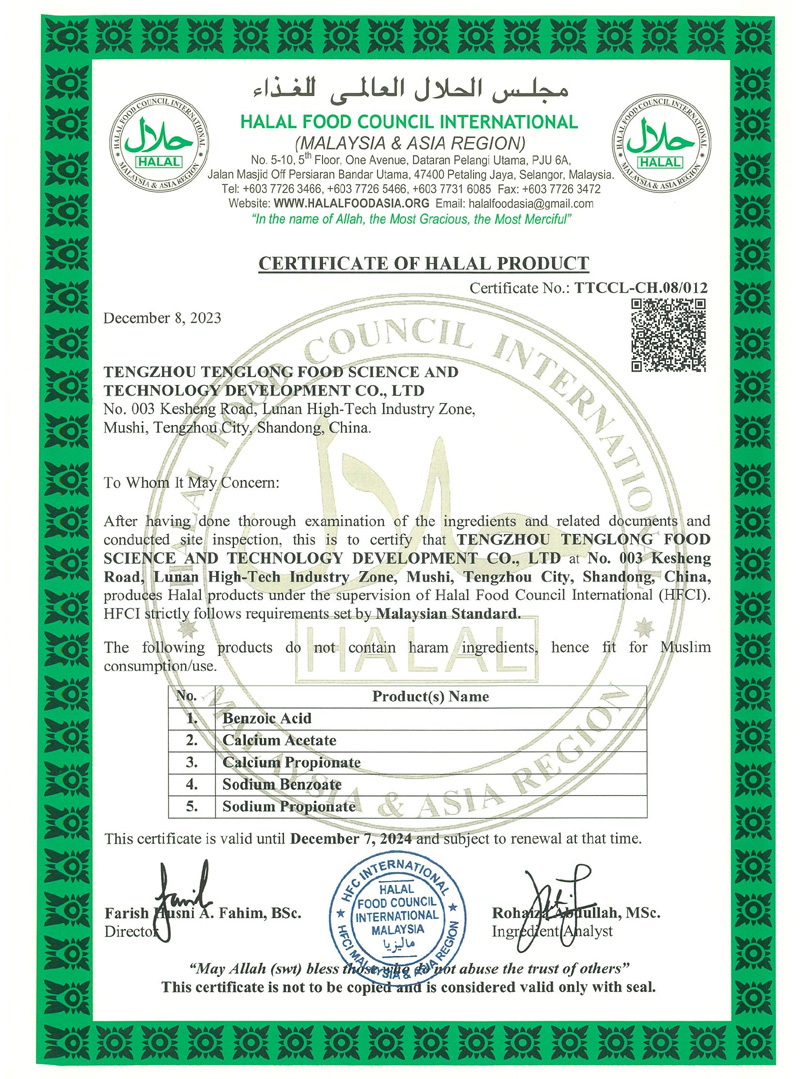 滕州市騰龍食品科技發展有限公司坐落在山東省滕州市木石鎮魯南高科技化工園區,成立于1996年,前身是滕州市騰龍化工有限責任公司,公司專業生產 苯甲酸,苯甲酸鈉,丙酸鈣,丙酸鈉和醋酸鈣等系列產品。